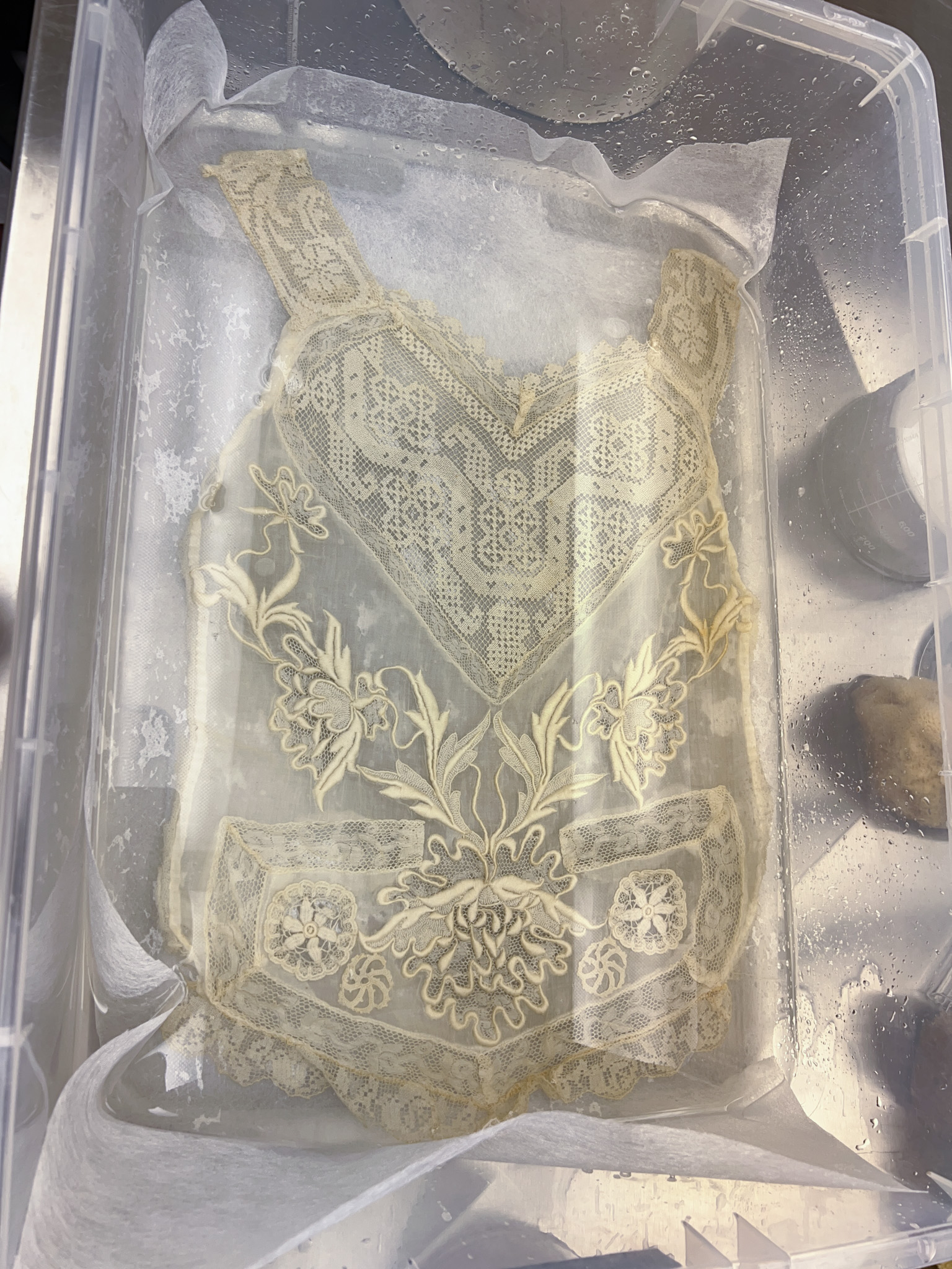 Over the summer of 2024, I assisted in the re-housing of objects in the holdings of the Ukrainian Museum in the East Village. The objects that I had worked with had been stored in anoxic chambers following a moth infestation. Re-housing these objects entailed careful vacuuming with a Nilfisk GM-80 vaccuum and inspection of Ukrainian kilims and sheepskin kozhukh with tweezers.